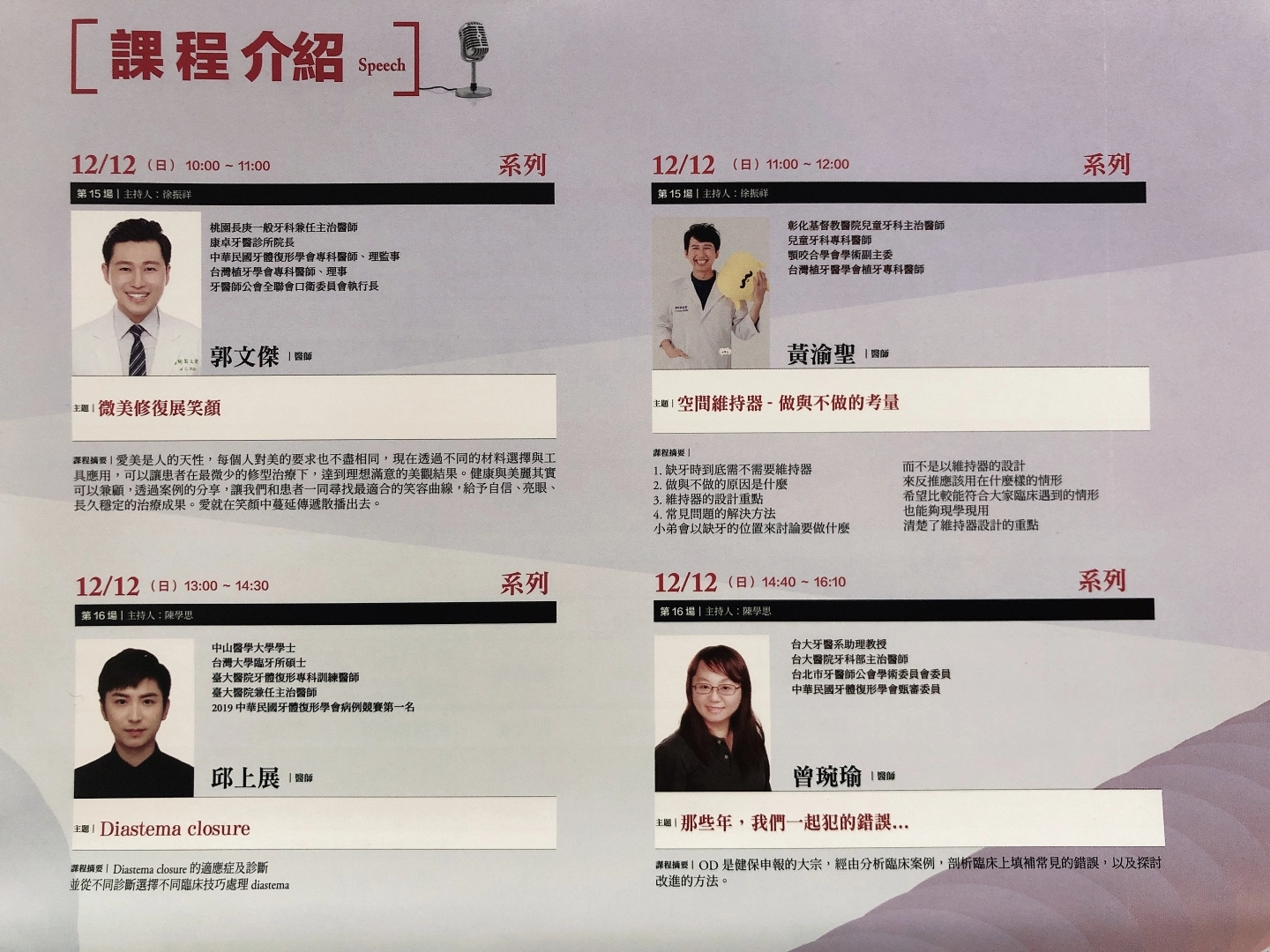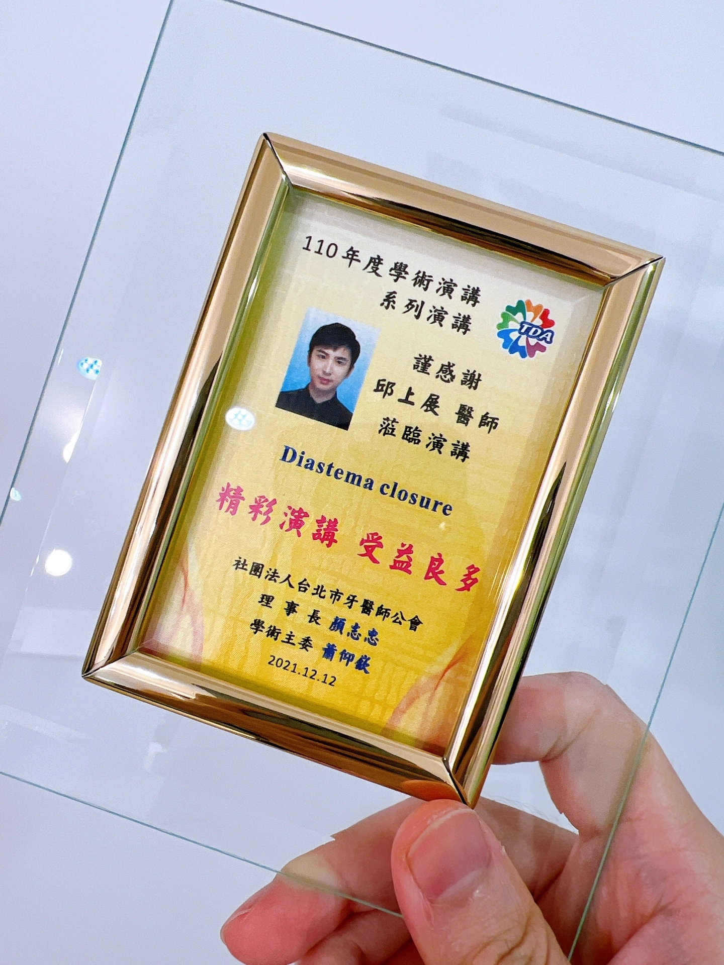 受台北市牙醫師公會邀請,擔任〈Diastema Closure〉關縫專題課程講師,針對臨床醫師講授如何以高精度複合樹脂重建前牙縫隙,提升微笑美感的整體協調性與自然度。) 不同於一般學術性講座,本課程更強調診間應用的可行性和診療策略制定,例如面對患者不同的審美需求和牙齒條件,該如何進行客製化診斷設計。這也是我在多年牙體復形臨床中不斷累積的經驗心得。 很榮幸能夠與來自各地的臨床牙醫師們共同交流這項技術,也希望透過這次的分享能提供同業在臨床上不同診療思維。